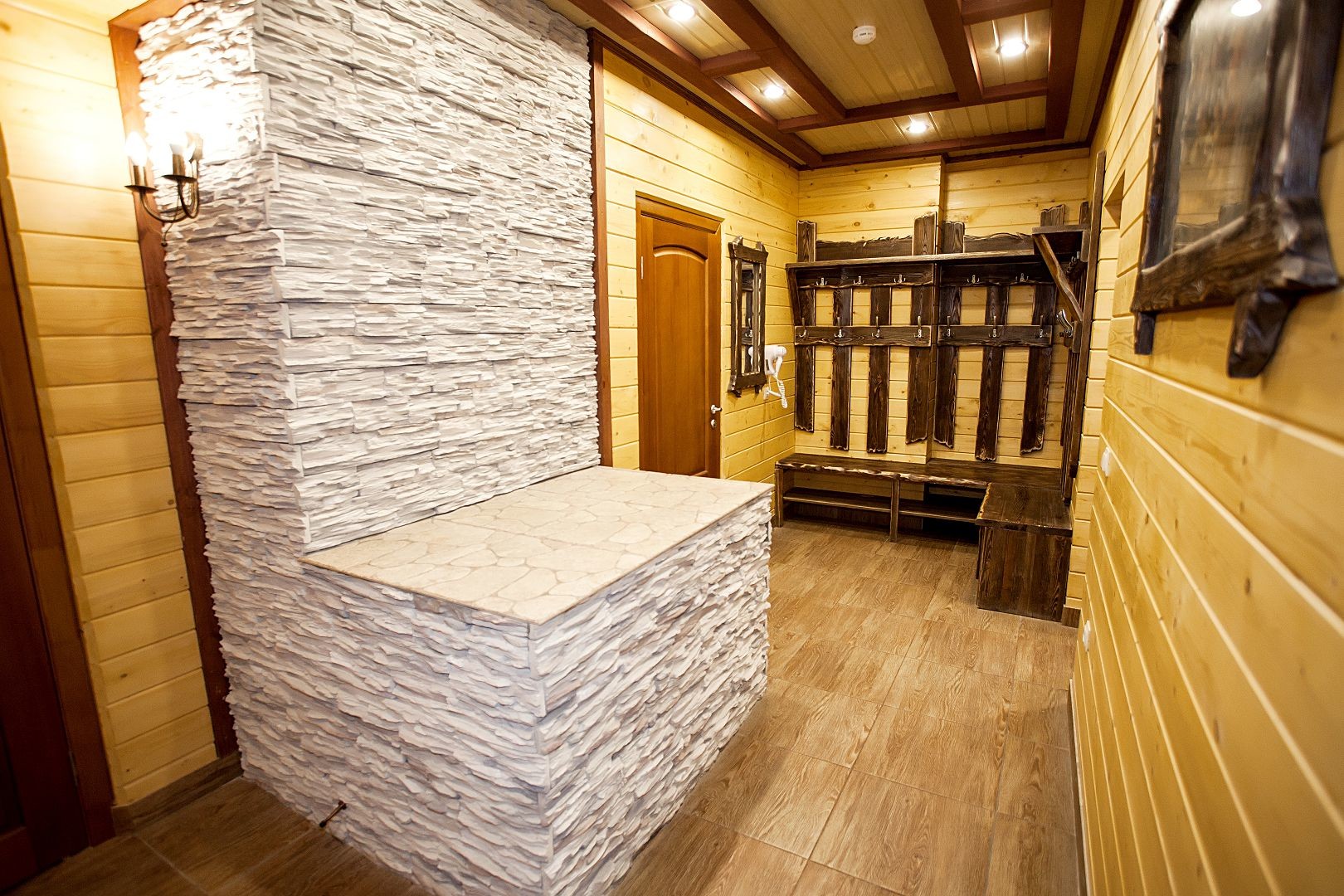 Внутри вас ждёт домашняя обстановка и уютный интерьер. Для банных процедур предусмотрена финская парилка с регулятором температуры и турецкий хамам. В парные вы можете взять веники из натурального дерева, аромамасла, скарбы для лица и тела и устроить полезные спа процедуры. Банные принадлежности можно приобрести за дополнительную плату у администрации сауны.